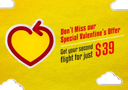 We have an unmissable offer for you this Valentine’s Day. It’s so good you’re sure to jet off with your loved one to an unforgettable holiday. And if you’re single, well… then you’ll have the best excuse to call your ex to take advantage of our offer together. Book your flights before 11 February, and from March to June your plus one will fly for just $39 including taxes and charges on any of our international routes.